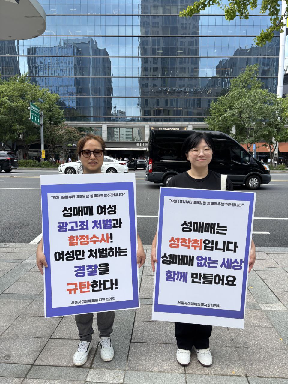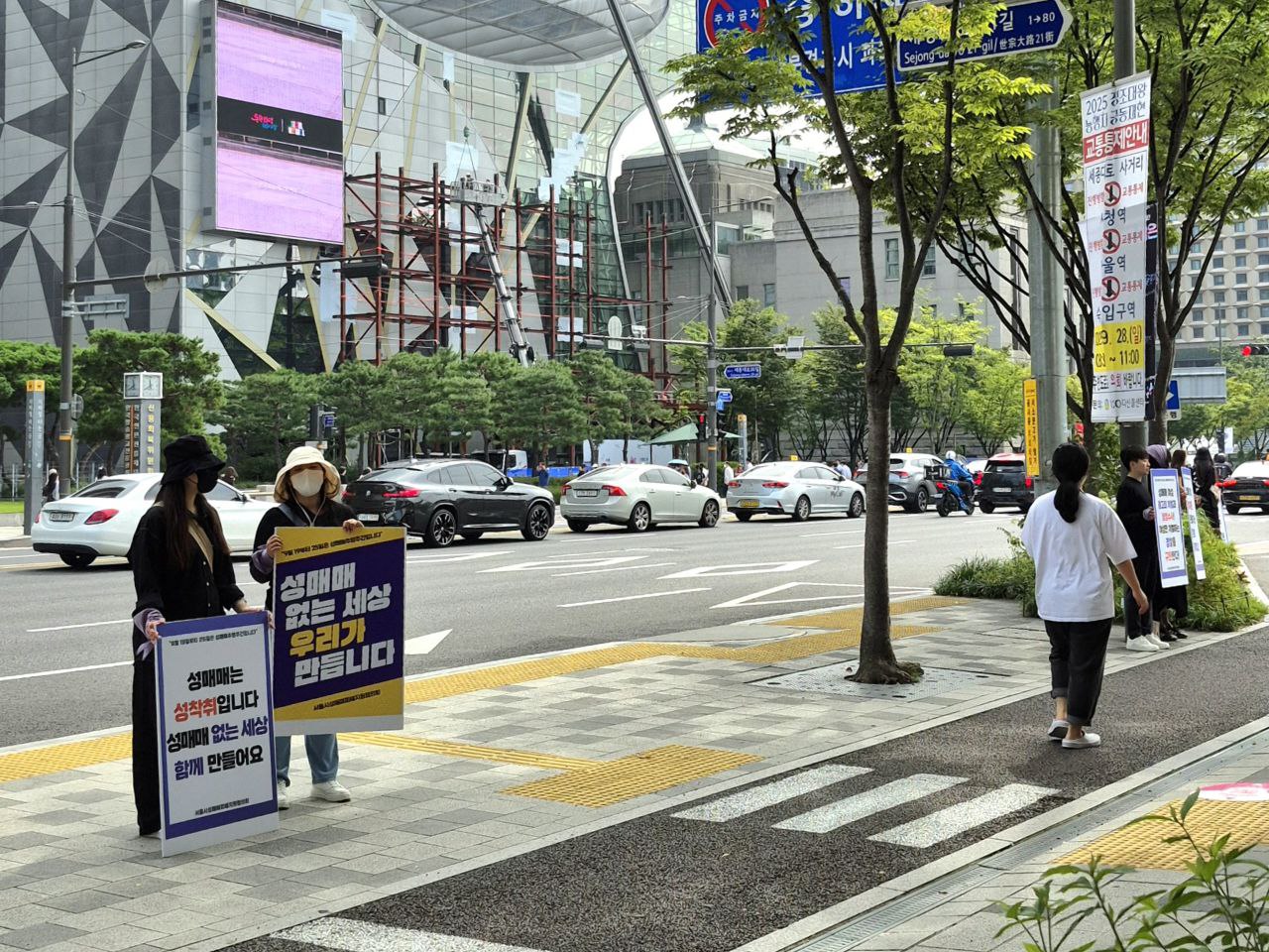 서울시성매매피해지원시설협의회는 성매매추방주간을 맞아 25일 서울 종로구 세종대로 일대에서 성매매 방지와 피해자 인권 보호를 주제로 캠페인을 벌였다. 이날 행사는 광화문역에서 서울시청까지 이어지는 세종대로 구간에서 진행됐으며, 협의회 소속 상담소·지원시설·자활지원센터·대안교육위탁기관 등 20개 성매매피해지원시설의 활동가 90명이 참여했다. |