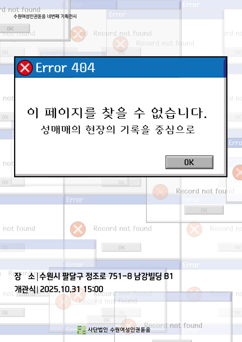 〈Error 404 : 이 페이지를 찾을 수 없습니다. ― 성매매 현장의 기록을 중심으로〉 전시는