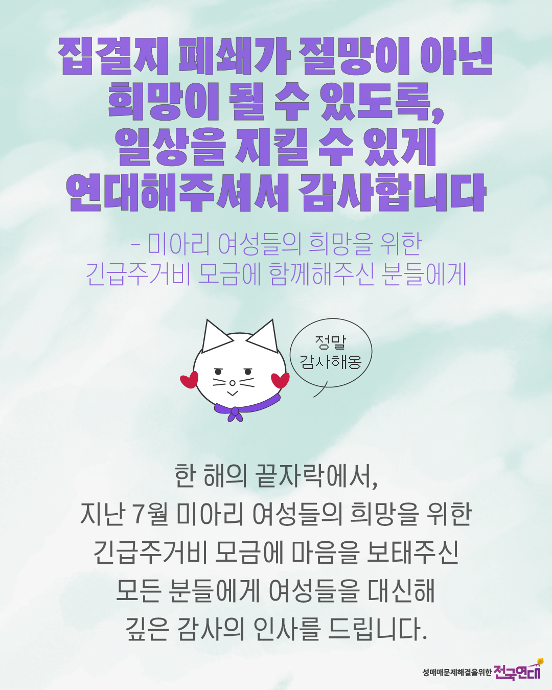 - 미아리 여성들의 희망을 위한 긴급주거비 모금에 함께해주신 분들에게