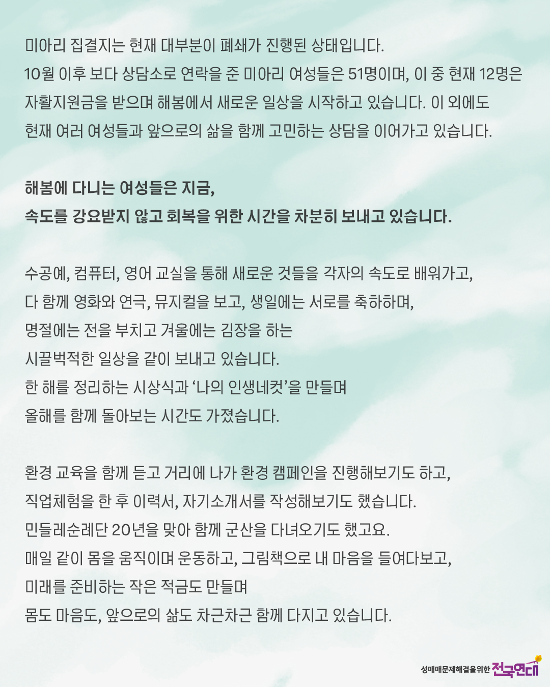 집결지 폐쇄가 절망이 아닌 희망이 될 수 있도록,